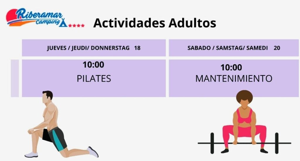En temporada baja también contamos con distintas actividades para adultos, como música en vivo todas las semanas, excursiones, estiramientos, bingo, mercadillos, Halloween, cenas de Navidad y Nochevieja…